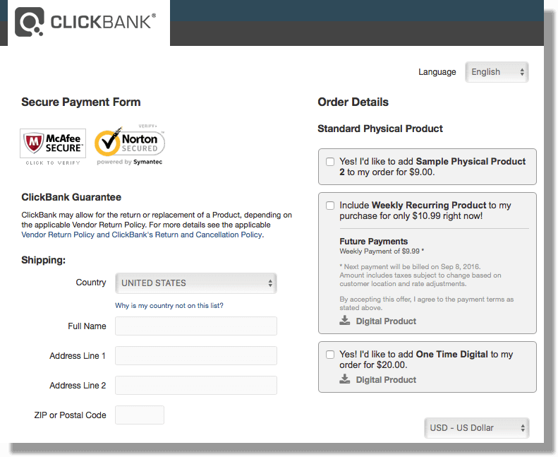 This is a great place to offer a profit with recurring billing. The initial extra cost to the customer may be small, but the result may be many months of extra monthly income for you. ClickBank vendors are really good at this: